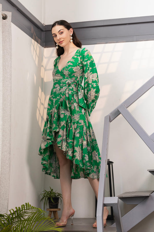 Evergreen Blossom Wrap Midi Dress
