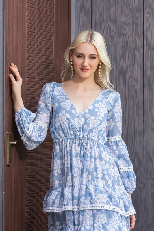 Sky & Snow Layered Fit & Flare Maxi Dress