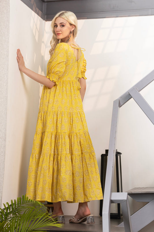 Yellow Ember Fit & Flare Maxi Dress