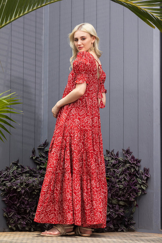 Maroon Mirage Back Tie-Up Fit & Flare Maxi Dress