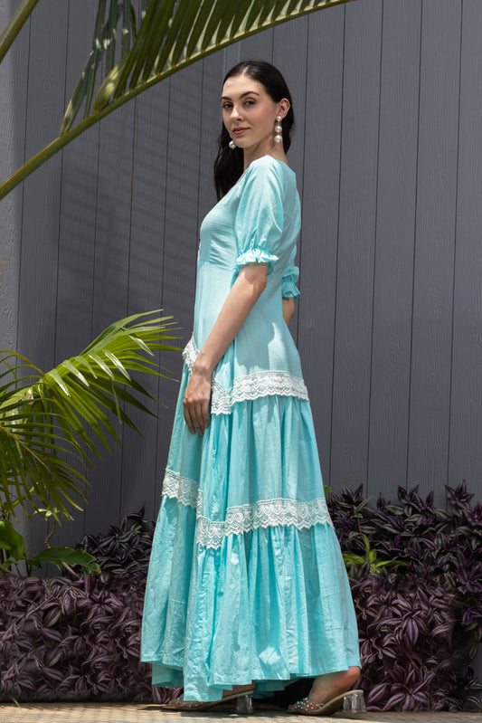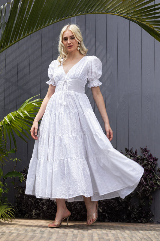 Snow Petal Schiffli Cotton Fit & Flare Maxi Dress