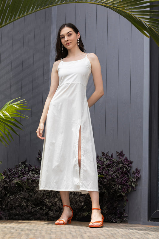 White Lily Thigh-High Slit A-Line Midi Dress