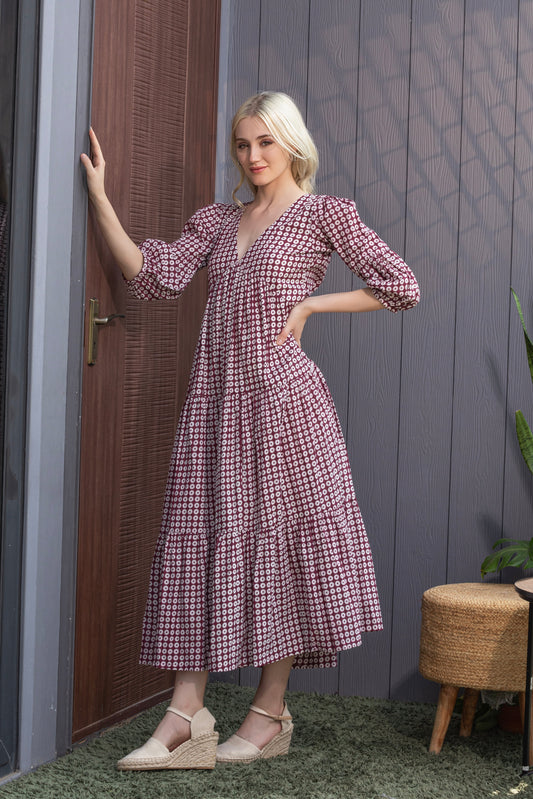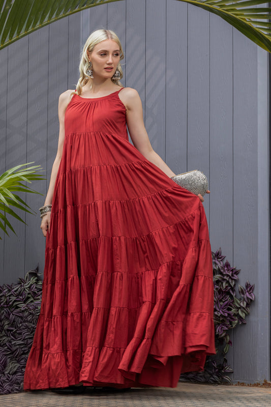 Rosewood Flare Tiered Detail Maxi Dress