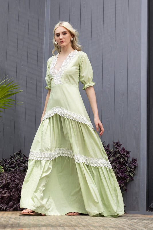 Pistachio Flare Contrast Lace Fit & Flare Maxi Dress