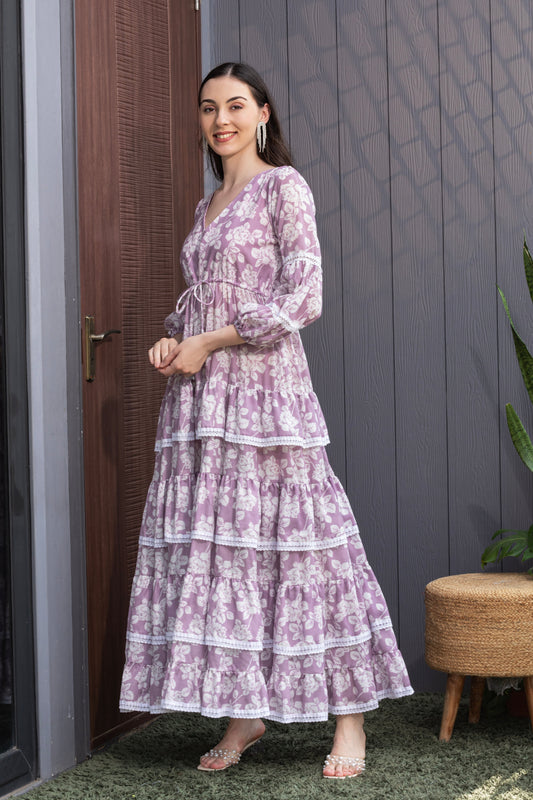 Petal Bloom Layered Fit & Flare Maxi Dress