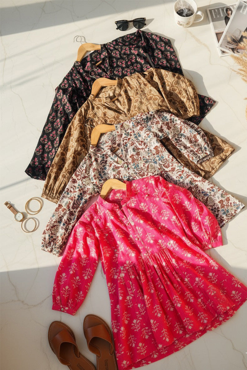 Embrace timeless grace with our Vintage Petal Flare Cotton Kurti, where comfort meets heritage charm. Crafted from soft, breathable cotton, this black kurti is adorned with delicate rose-pink floral motifs that bring an artisanal touch to your everyday wardrobe.