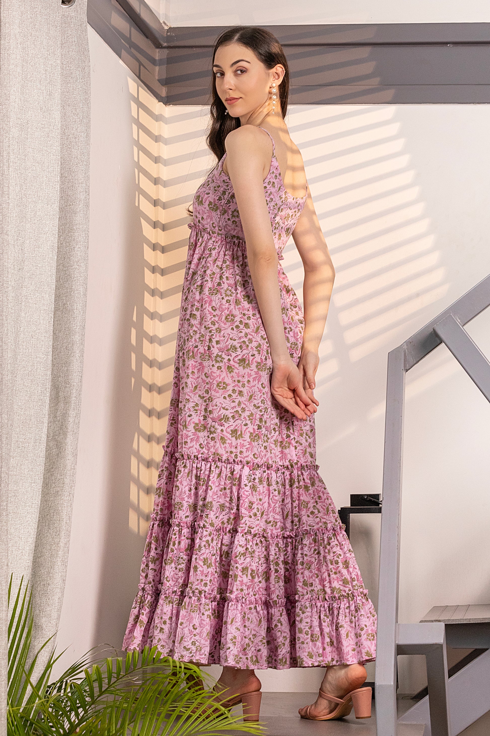 - The pink and green handblock floral print gives this dress a chic and feminine look