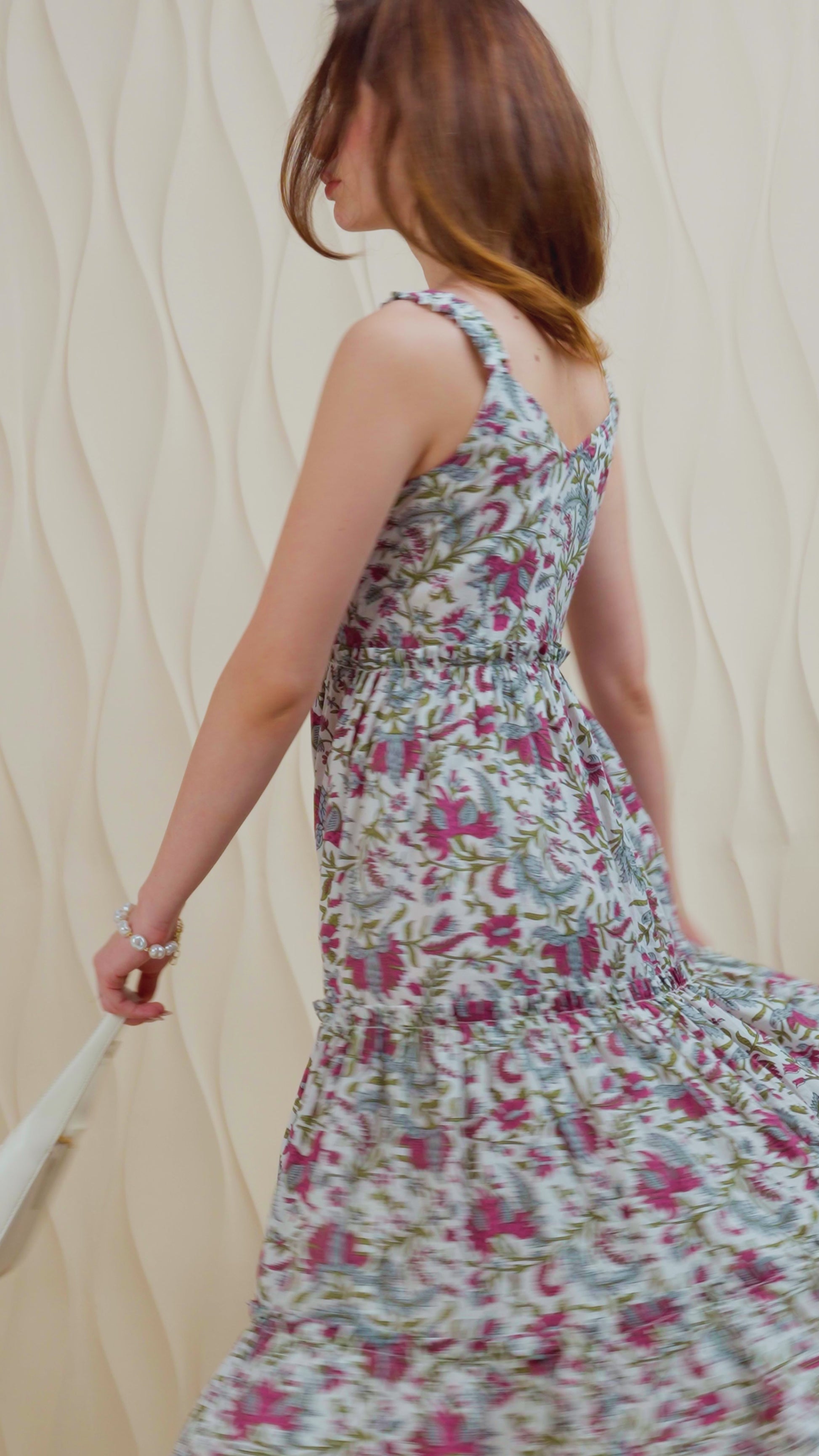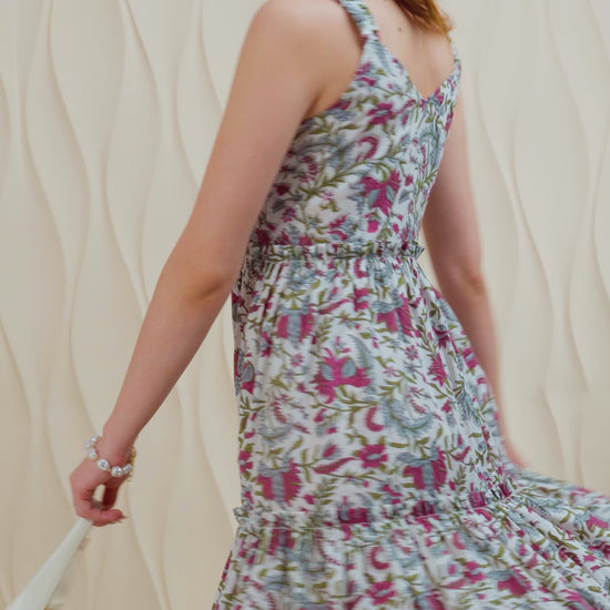 Boho Bloom Ruffle-Strap Cotton Midi Dress